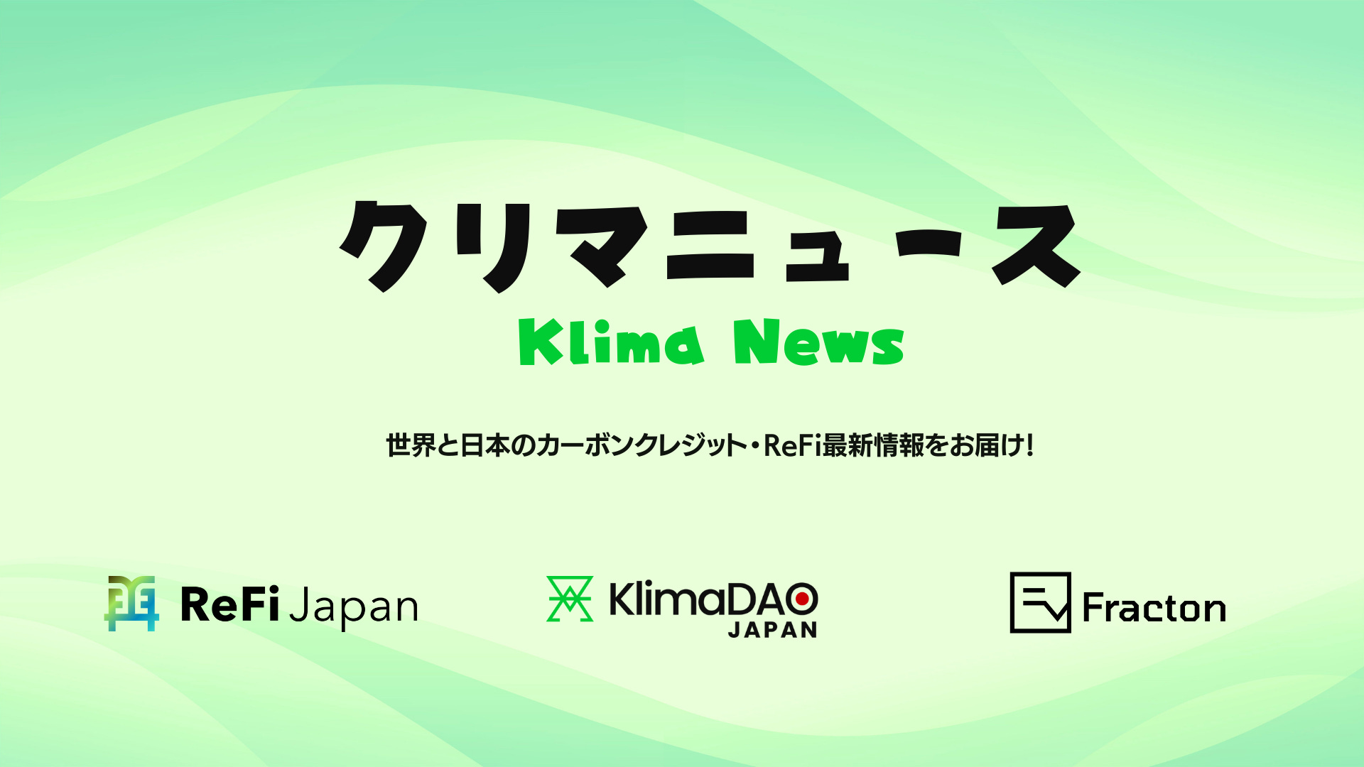 2025年10月より、世界と日本のカーボンクレジットやReFi(再生金融)の最新情報をお届けするニュースレター『クリマニュース』を開始します。編集はReFi JapanとKlimaDAO JAPANが共同で行い、Ethereumエコシステムに精通したFracton Venturesが監修に加わることで、グローバルと日本の両視点から信頼性の高い情報を発信していきます。