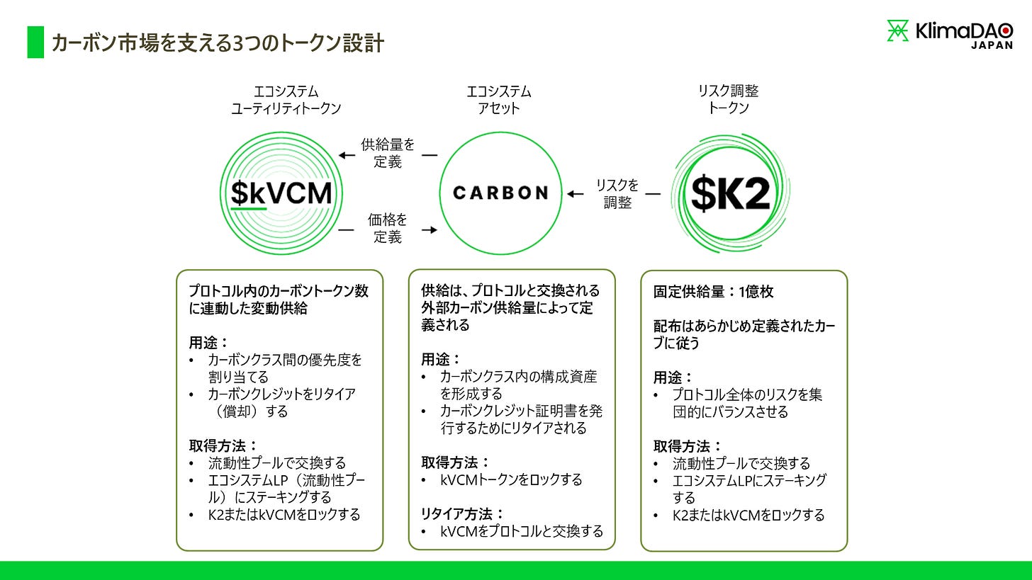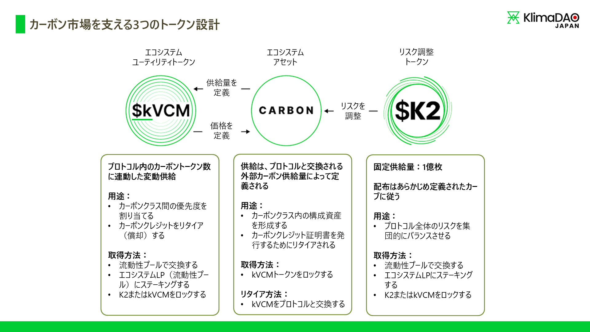 Klima 2.0の中核を成すのが、3つのトークンによる連携構造です。