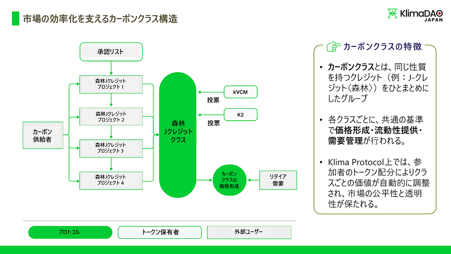 まず、kVCMはエコシステム内での経済的な中軸となり、市場参加者がどのカーボンクラス(クレジットのカテゴリ)に価値を配分するかを決める際に使われます。
