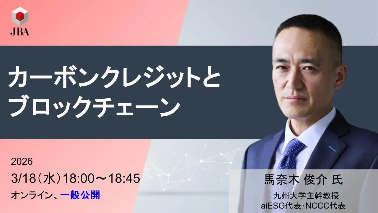 日本ブロックチェーン協会(JBA)主催で、「カーボンクレジット×ブロックチェーン」をテーマにしたオンラインセミナーが開催されます。カーボン市場全体を俯瞰しつつ、特に拡大するボランタリークレジット領域において、クレジットの真正性・トレーサビリティをどう担保するか、そしてその課題に対してブロックチェーンがなぜ重要な役割を果たし得るのかを、実務の視点も交えて整理する内容です。